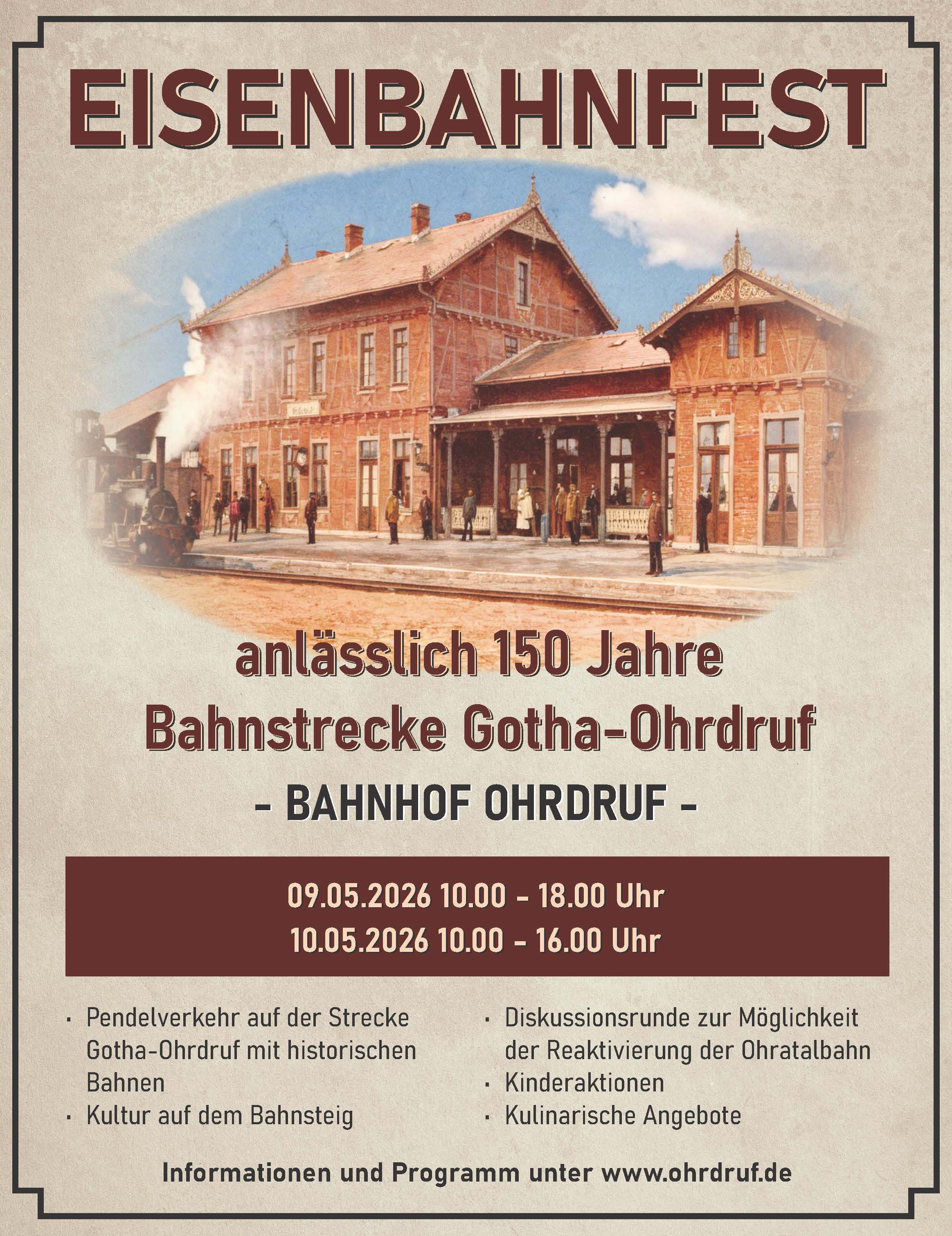 150 Jahre Ohratalbahn - Eisenbahnfest am 9./10.5.2026 in Ohrdruf